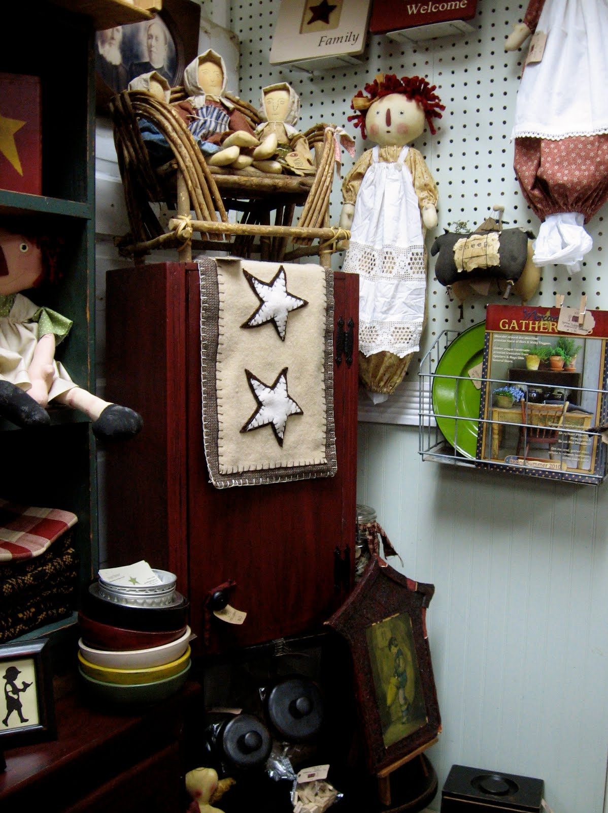I'm hoping to drop of these dolls and some great treasures I found junking the last two weekends tomorrow including a great extra rustic black table tomorrow at the stores. Towards the end of next week I hope to change out both of my spaces over to red white and blue - but well have to see how much I get made.